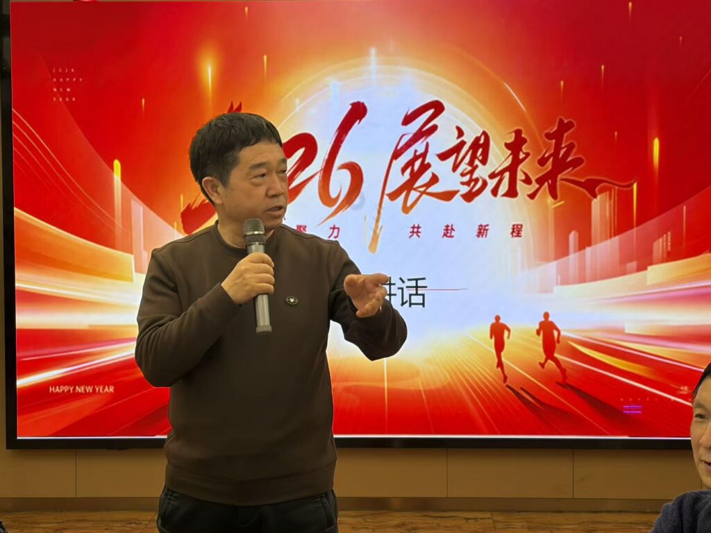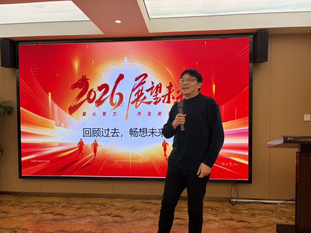 年会伊始,公司胡老师 发表新年致辞。致辞中,胡老师全面回顾了 2026年公司在市场开拓、技术研发、产品升级、团队建设等方面取得的亮眼成绩,对全体员工一年来的辛勤付出与并肩奋斗表示衷心的感谢。面对新一年的行业趋势与市场机遇,深入分析了公司当前的发展定位与核心优势,明确了 2026 年的发展目标、战略规划与工作重点,号召全体员工继续秉持 “诚信、创新、务实、共赢” 的理念,以更昂扬的斗志、更务实的作风、更团结的力量,凝心聚力、奋勇争先,在新的征程上攻坚克难、再创佳绩。铿锵有力的话语点燃了全体员工的奋斗热情,现场掌声雷动,振奋人心。